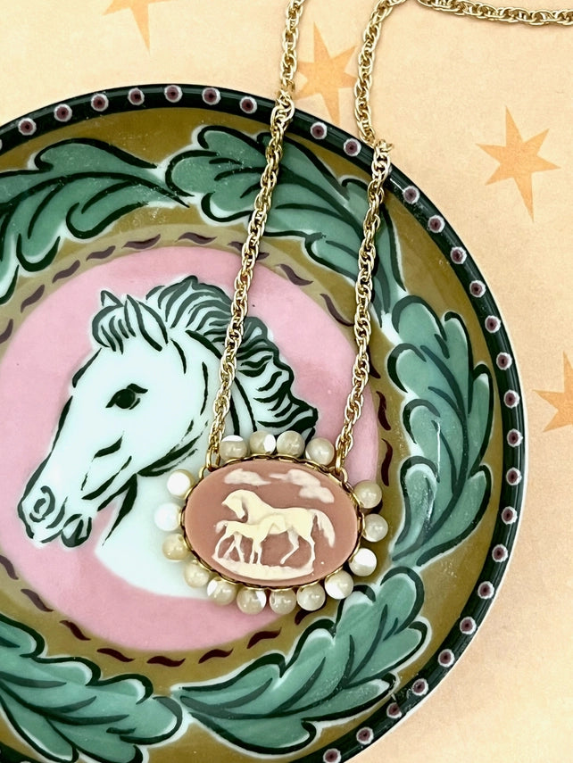 Experience the allure of our Rosalind Necklace with your choice of 2 lengths! This stunning necklace features a delightful horse cabochon that will add a touch of sweetness to any outfit. Don't miss out on this must-have accessory!