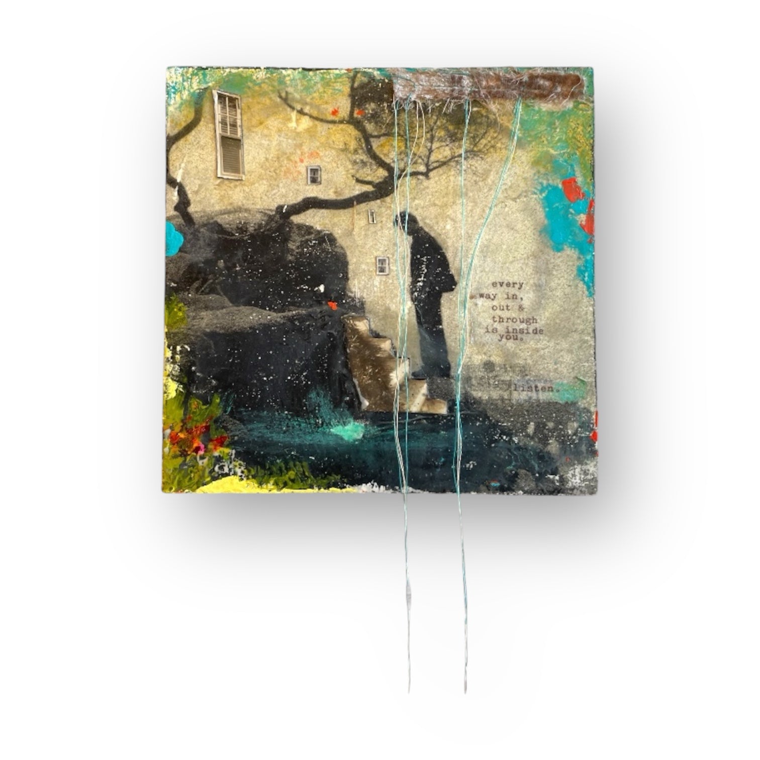 6x6 Mixed Media artwork by Colleen Attara. A compact, vibrant piece that blends layered materials and textures to create visual depth. Perfect for intimate spaces, shelving, or gallery walls. Each work showcases Attara's distinctive approach to contemporary mixed media, combining unexpected materials into cohesive, thought-provoking compositions. Ideal for collectors seeking original, statement-making art in a manageable format.